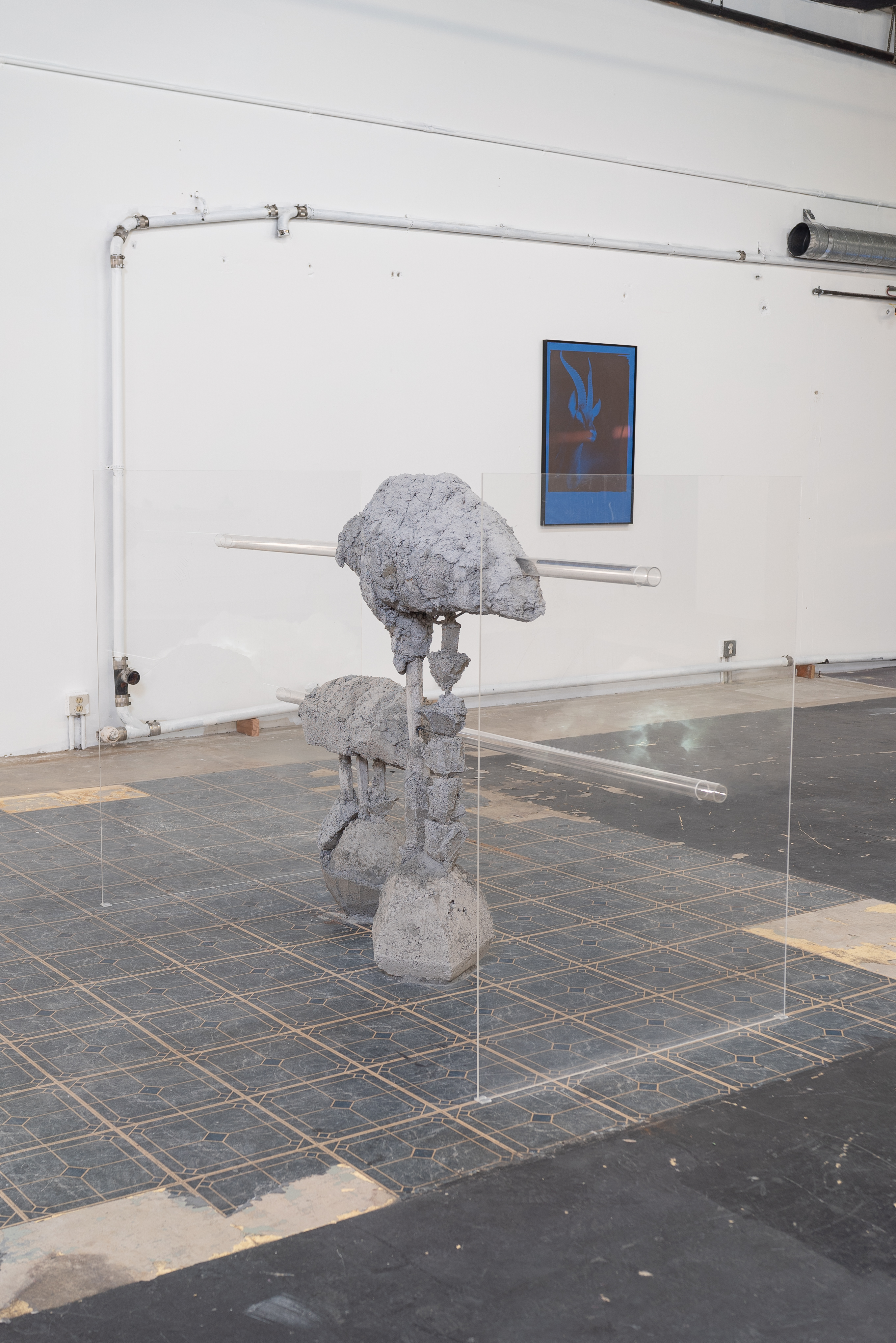 The concrete sculpture needs the investigative plexiglass structure to stand up